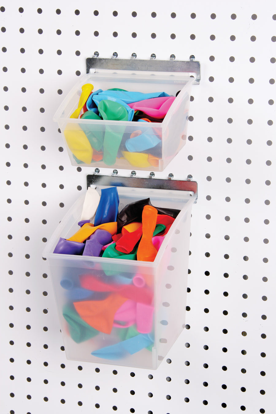 Most of the Slatbox bins are manufactured to fit slatwall and other slotted wall systems except for the Hobibox range which is manufactured with small pegs that slot straight into most common pegboard wall systems including metric pegboard and imperial pegboard. Slatbox have developed a unique patented pegboard adaptor so that any of Slatbox’s range including Popbox, Shelfbox, Storebox, Cratebox can be fitted directly onto any pegboard wall system.